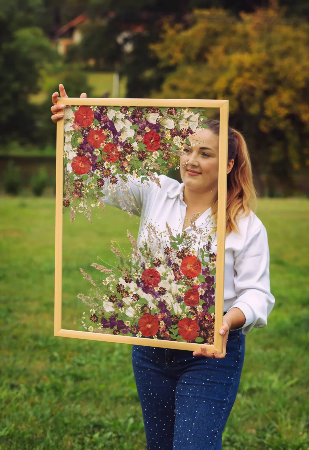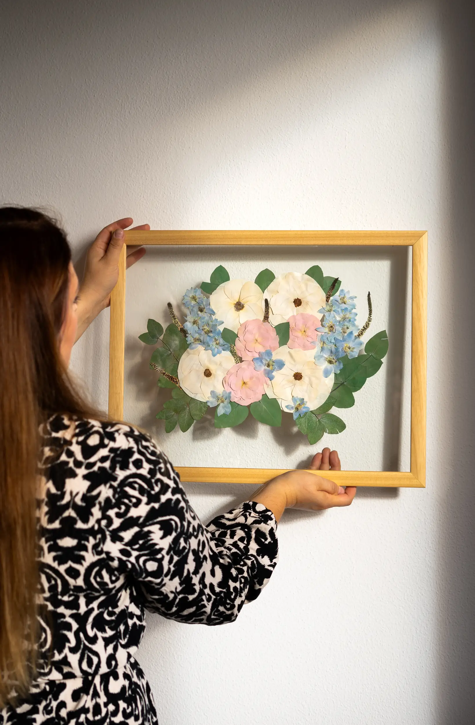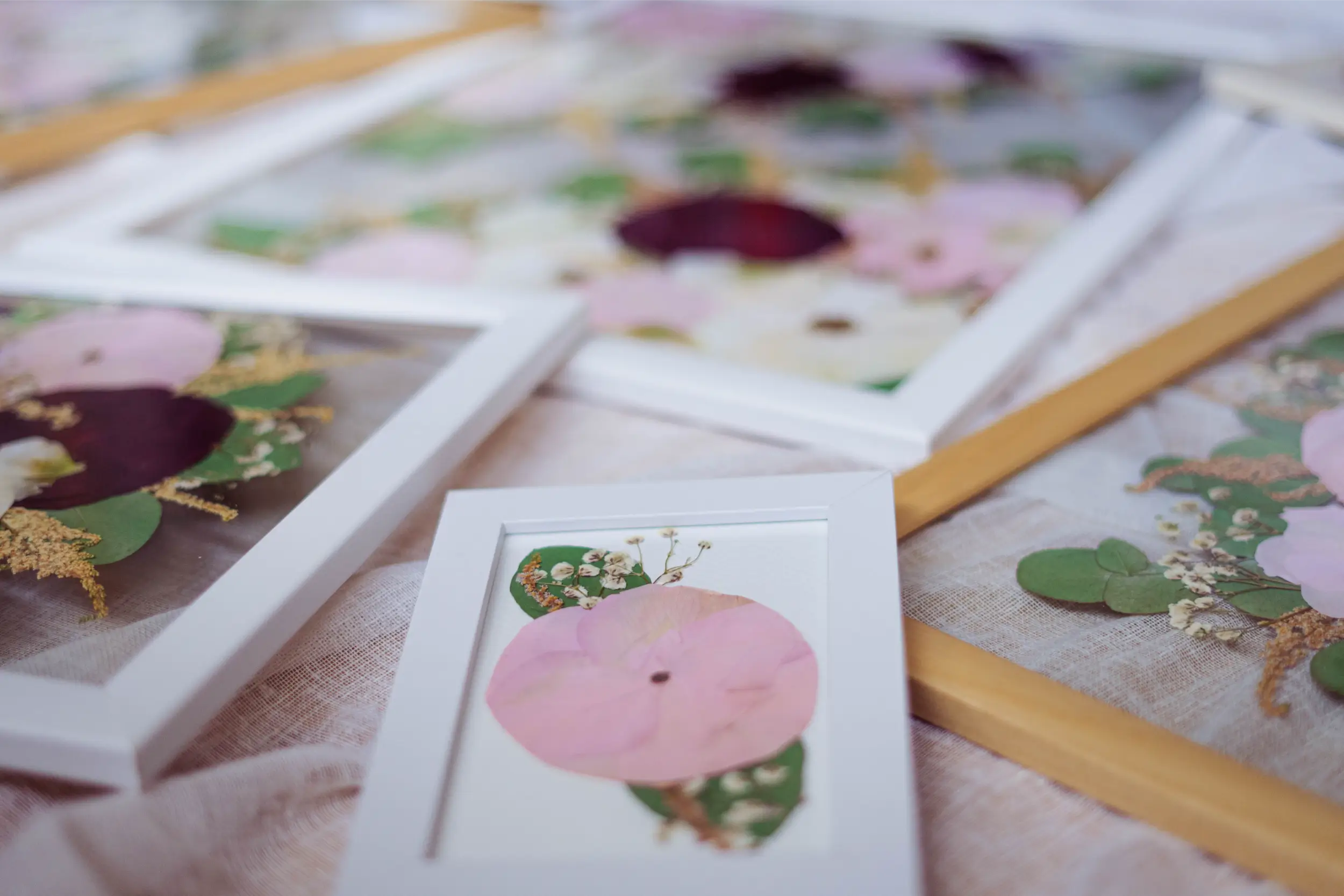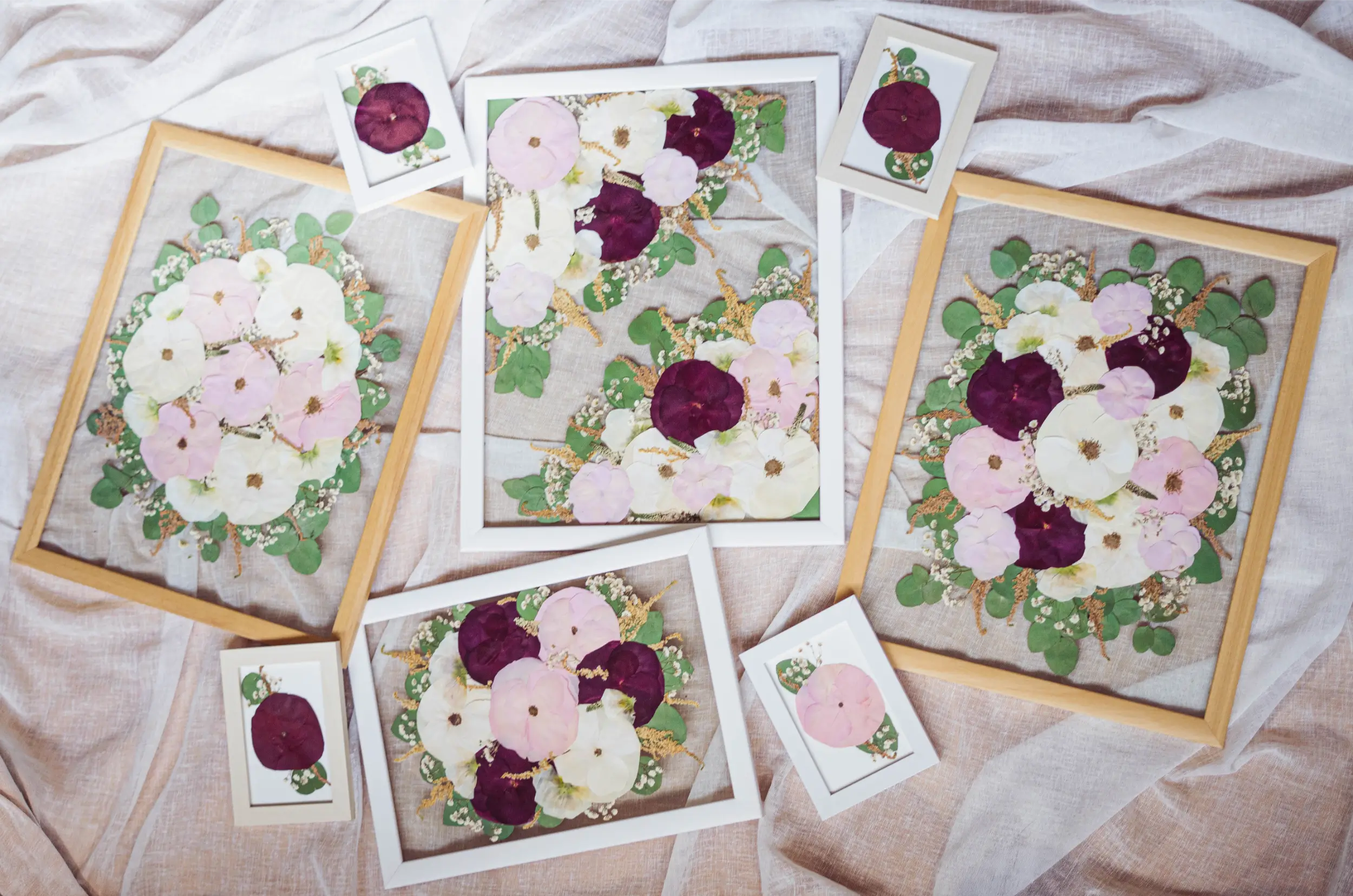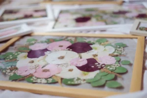 Sklo na sklo – Tato technika vytváří unikátní, vzdušný a osobitý vzhled, díky kterému vylisované květiny dokonale vyniknou.