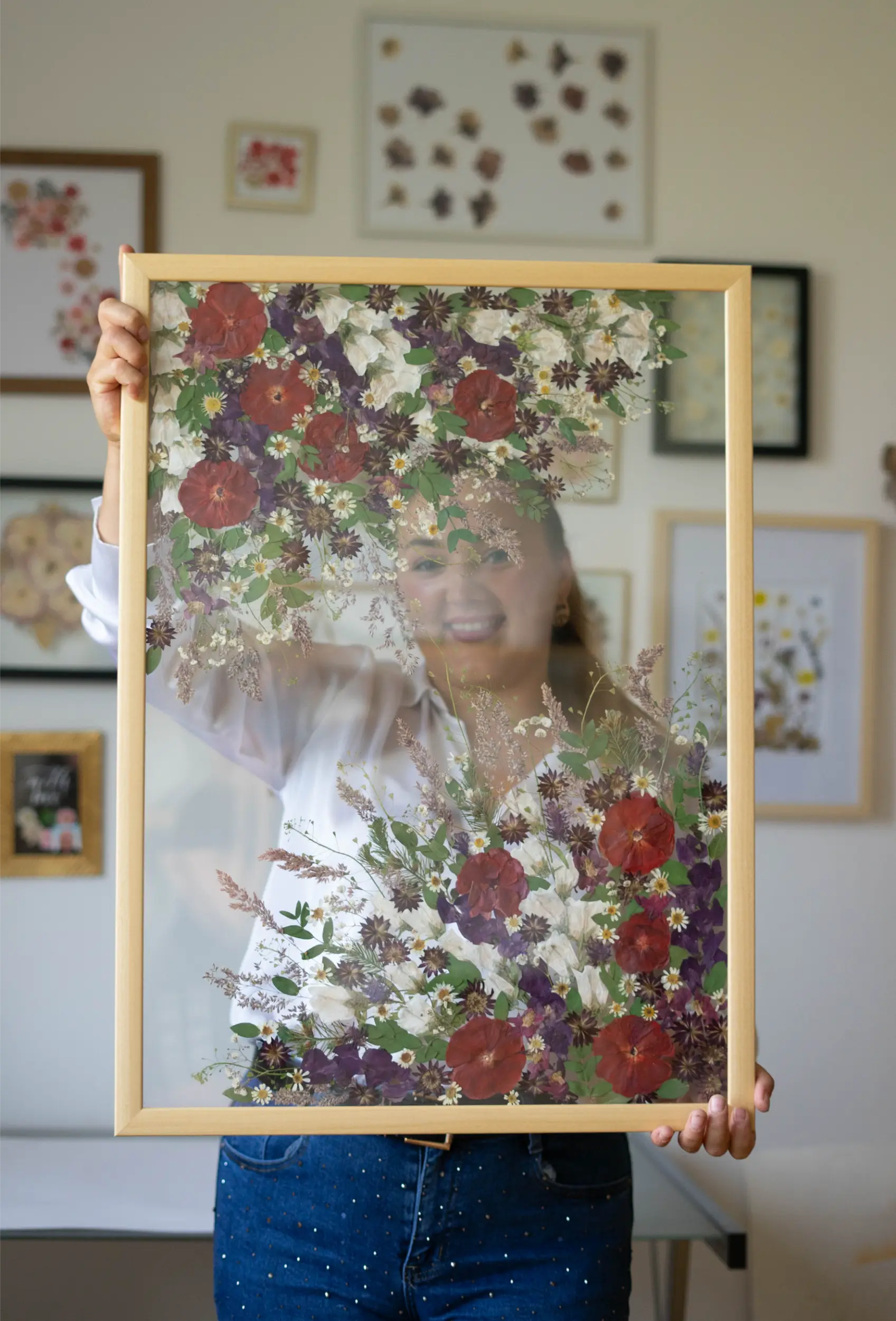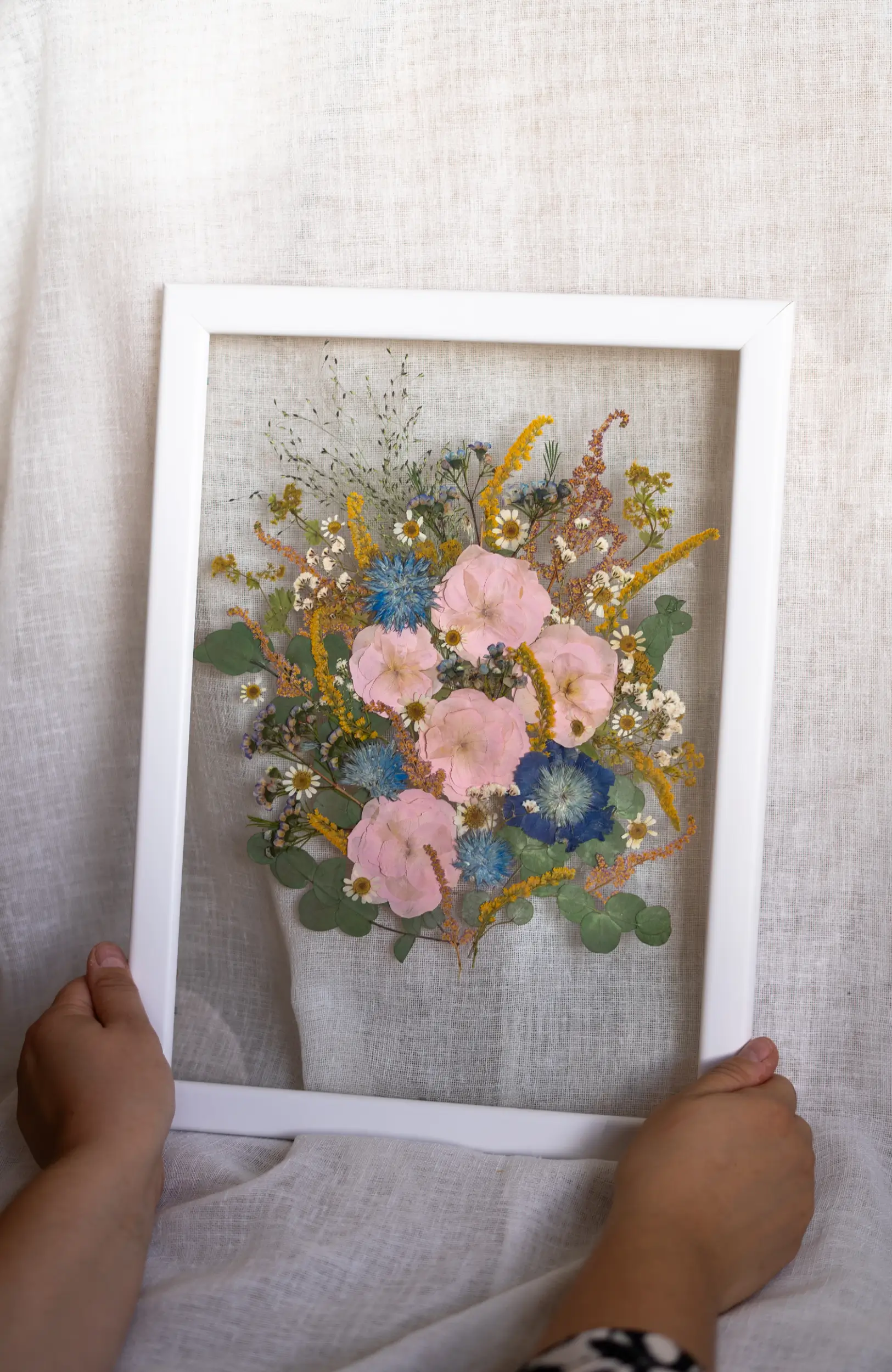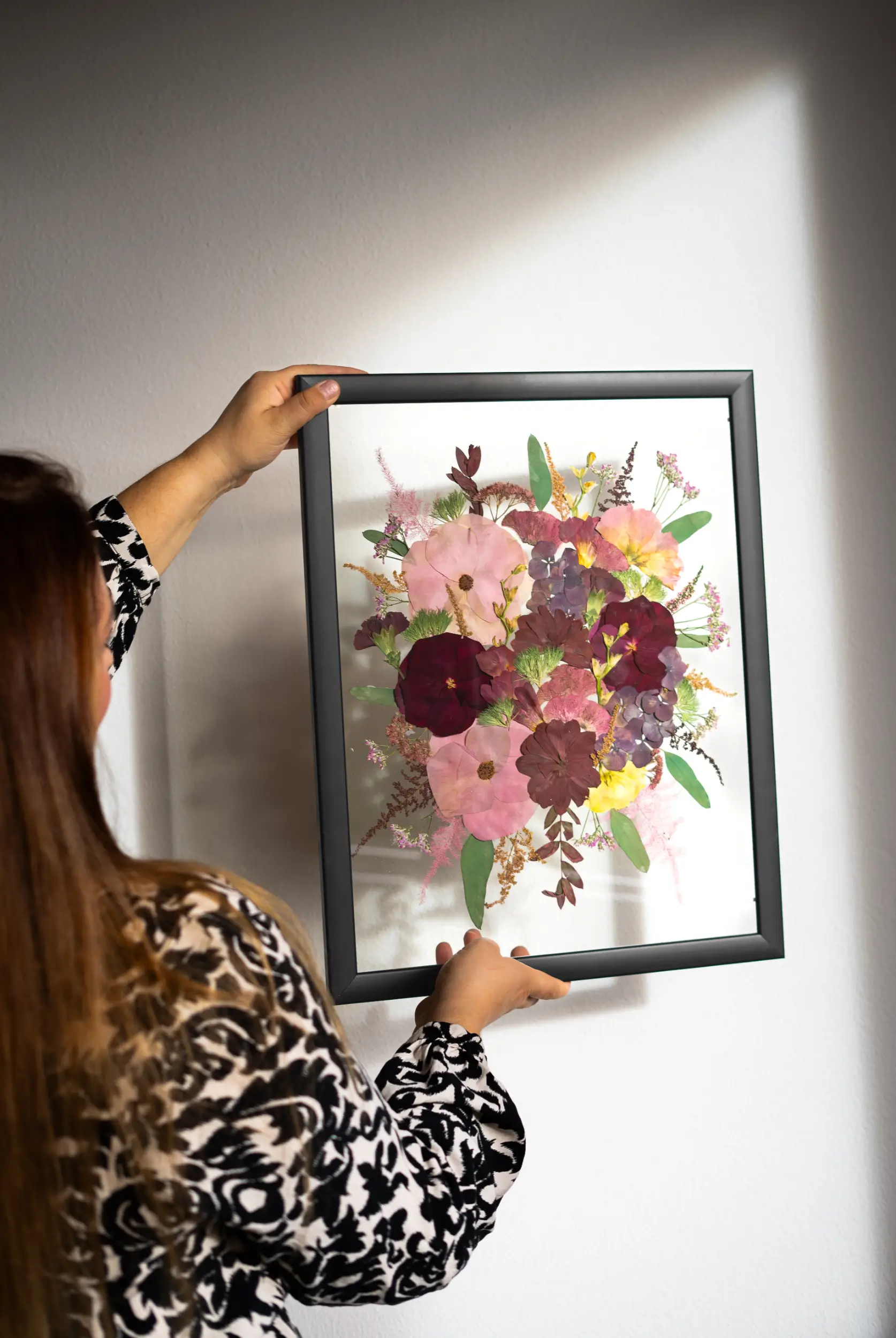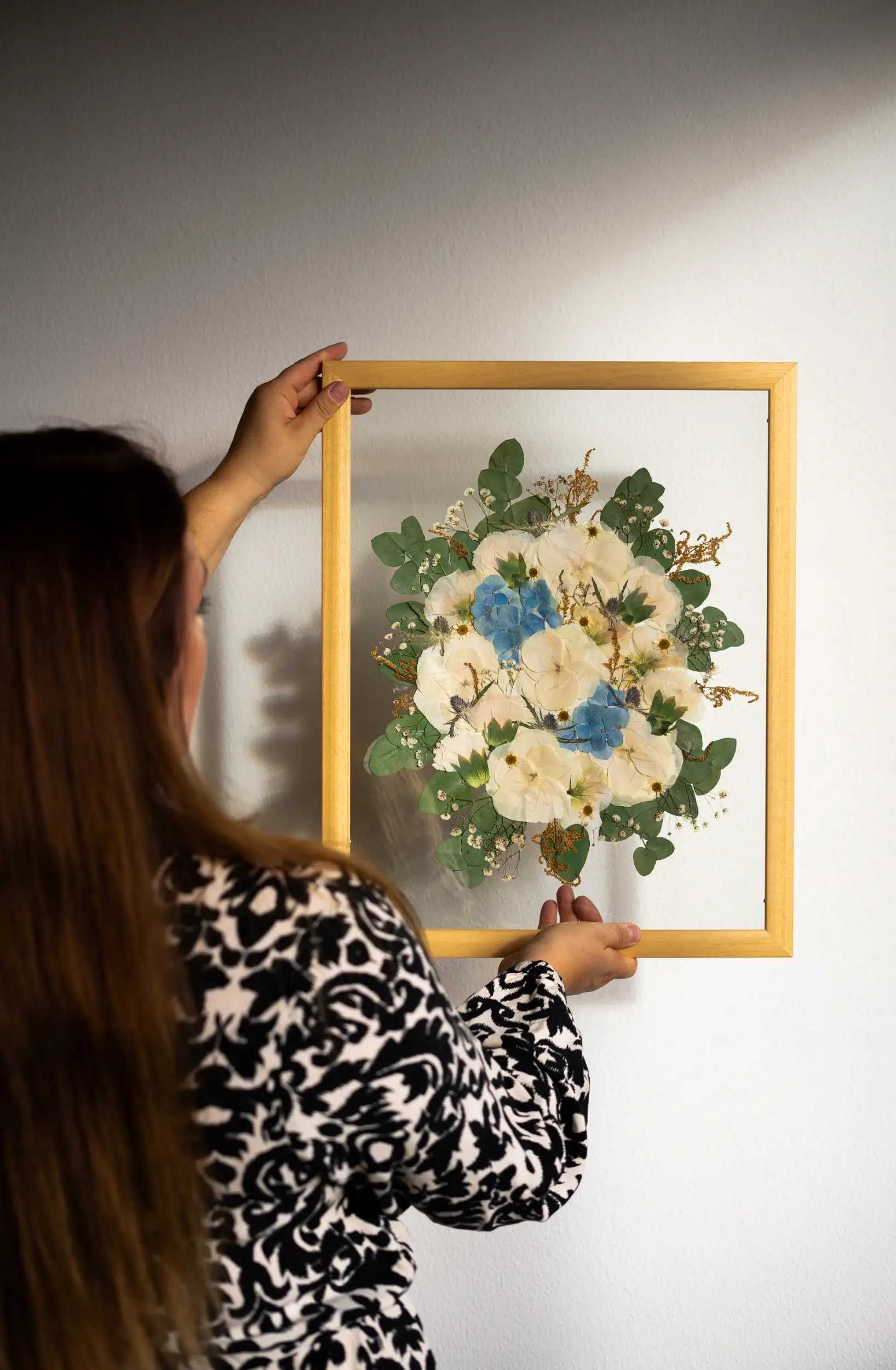 Sklo na sklo – Tato technika vytváří unikátní, vzdušný a osobitý vzhled, díky kterému vylisované květiny dokonale vyniknou.